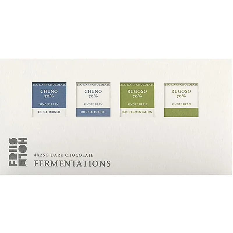 Friis-Holm ist die erste Firma, die zwei identische Schokoladen auf den Markt gebracht hat, die sich nur im Fermentationsprozess unterschieden. Die Ergebnisse waren gleichermaßen gut, aber überraschend anders.