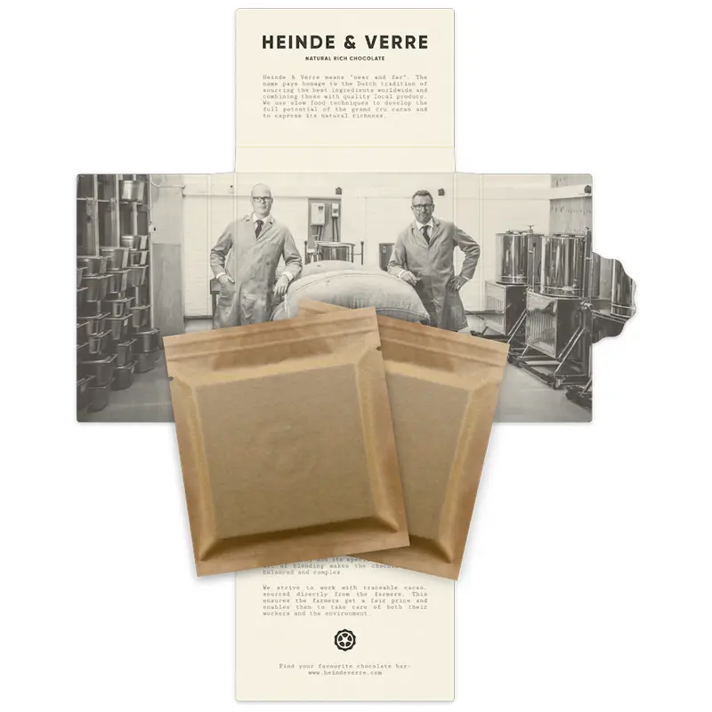 Heinde & Verre arbeitet direkt mit Kakaobauern zusammen und bezahlt faire Preise, die weit über den Marktwerten liegen. So entstehen Schokoladen, die nicht nur geschmacklich überzeugen, sondern auch sozial und ökologisch verantwortungsvoll produziert werden.