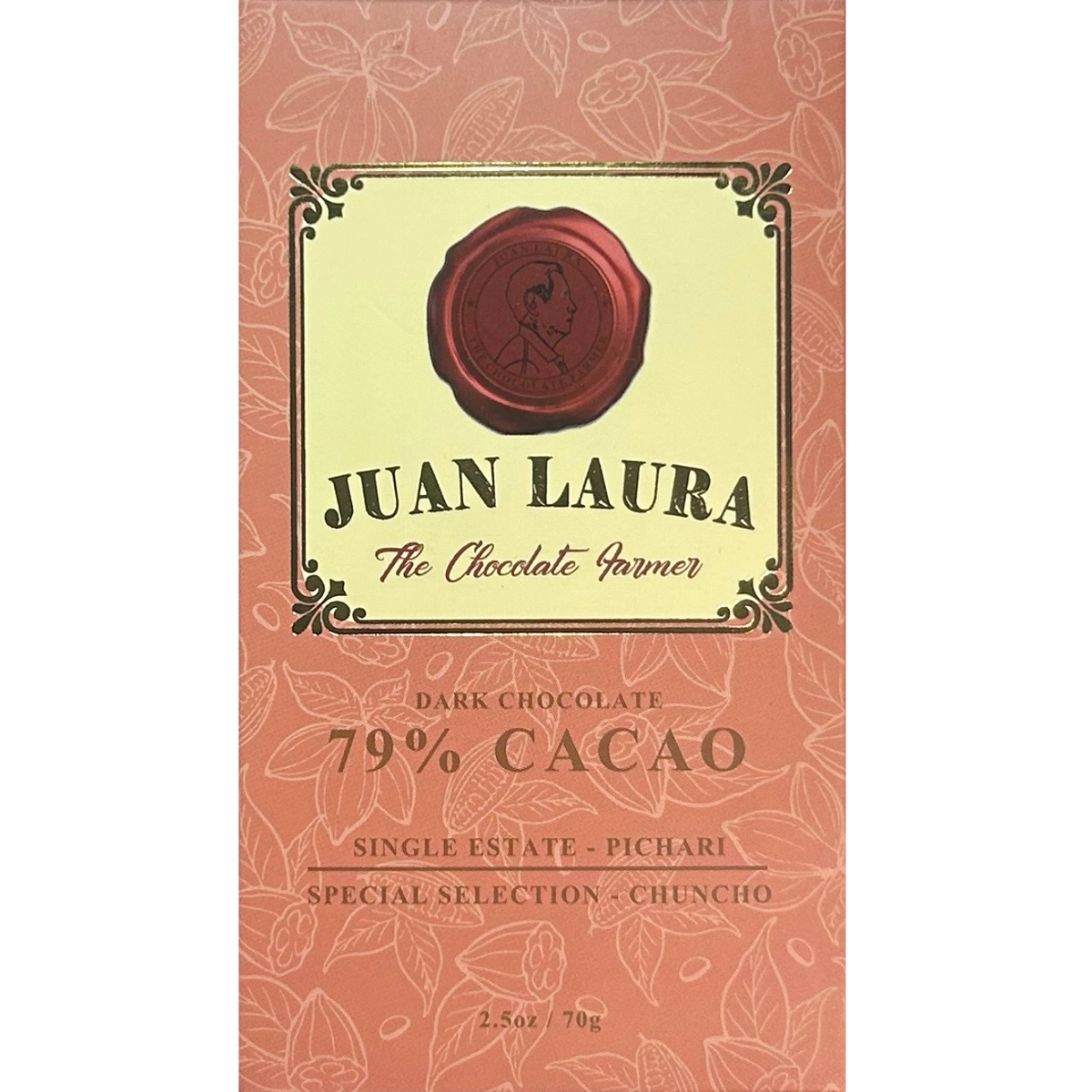 Die JUAN LAURA »Pichari – Chuncho« 79% Schokolade wird aus edlem, sortenreinem Chuncho-Kakao aus Pichari Alta in der Region VRAEM, Cusco in Peru hergestellt.